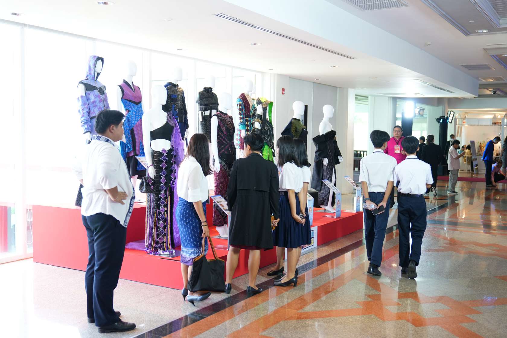 • บรรยากาศนิทรรศการ The Next Big Silk Designer Contest ครั้งที่ 6 ใน วันงานแถลงข่าวงานมหกรรมผ้าไหม ไหมไทยสู่เส้นทางโลกครั้งที่ 14