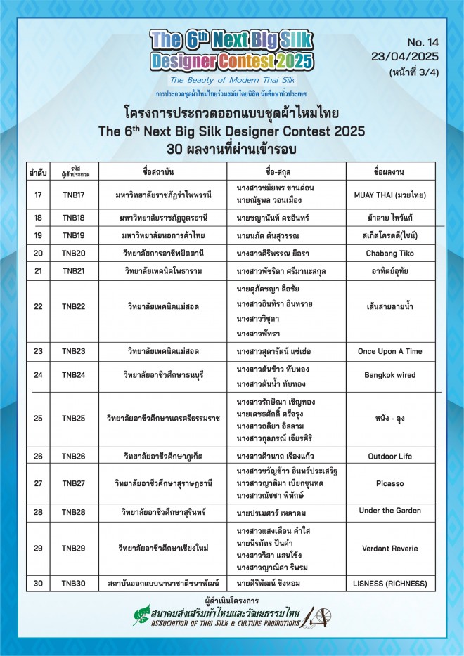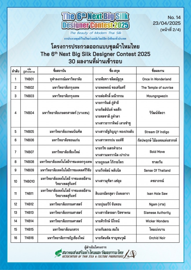The Next Big Silk Designer Contest ครั้งที่ 6 ประจำปี 2025