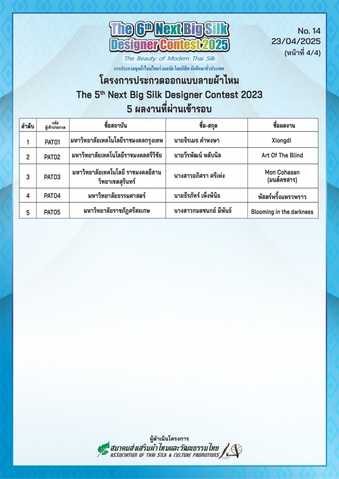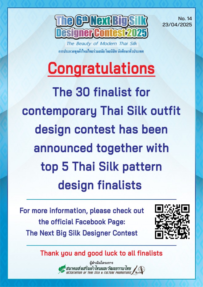 been announced together with top 5 Thai Silk pattern design finalists.
