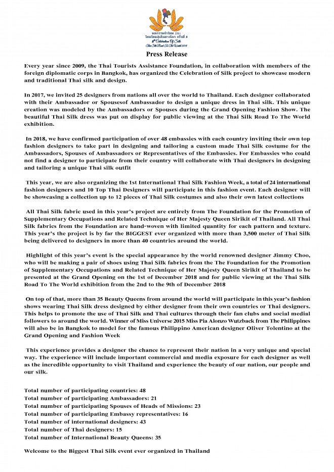 • The Event of The 13th Celebration of Silk, Thai Silk Road To The World