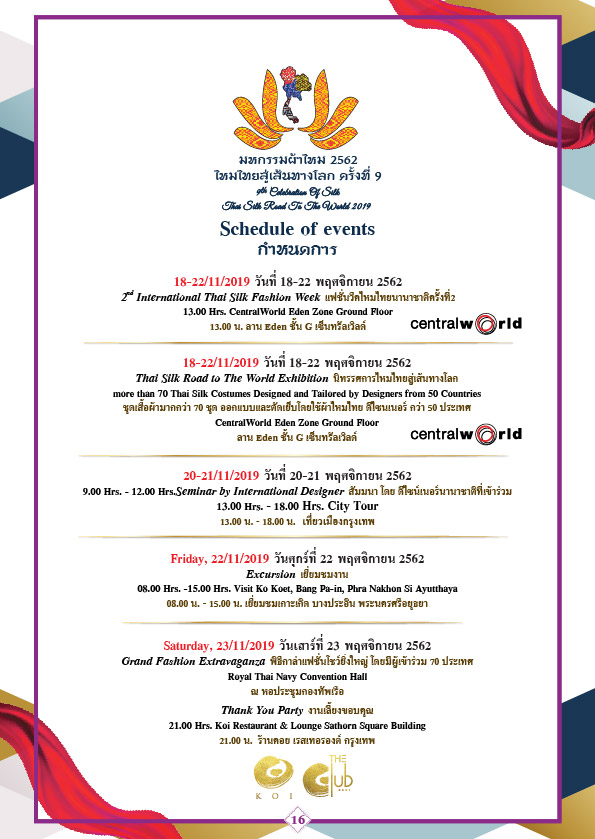 • กำหนดการอบรม สำหรับนักศึกษาที่ผ่านเข้ารอบ The Next Big Silk Designer Contest ครั้งที่ 6