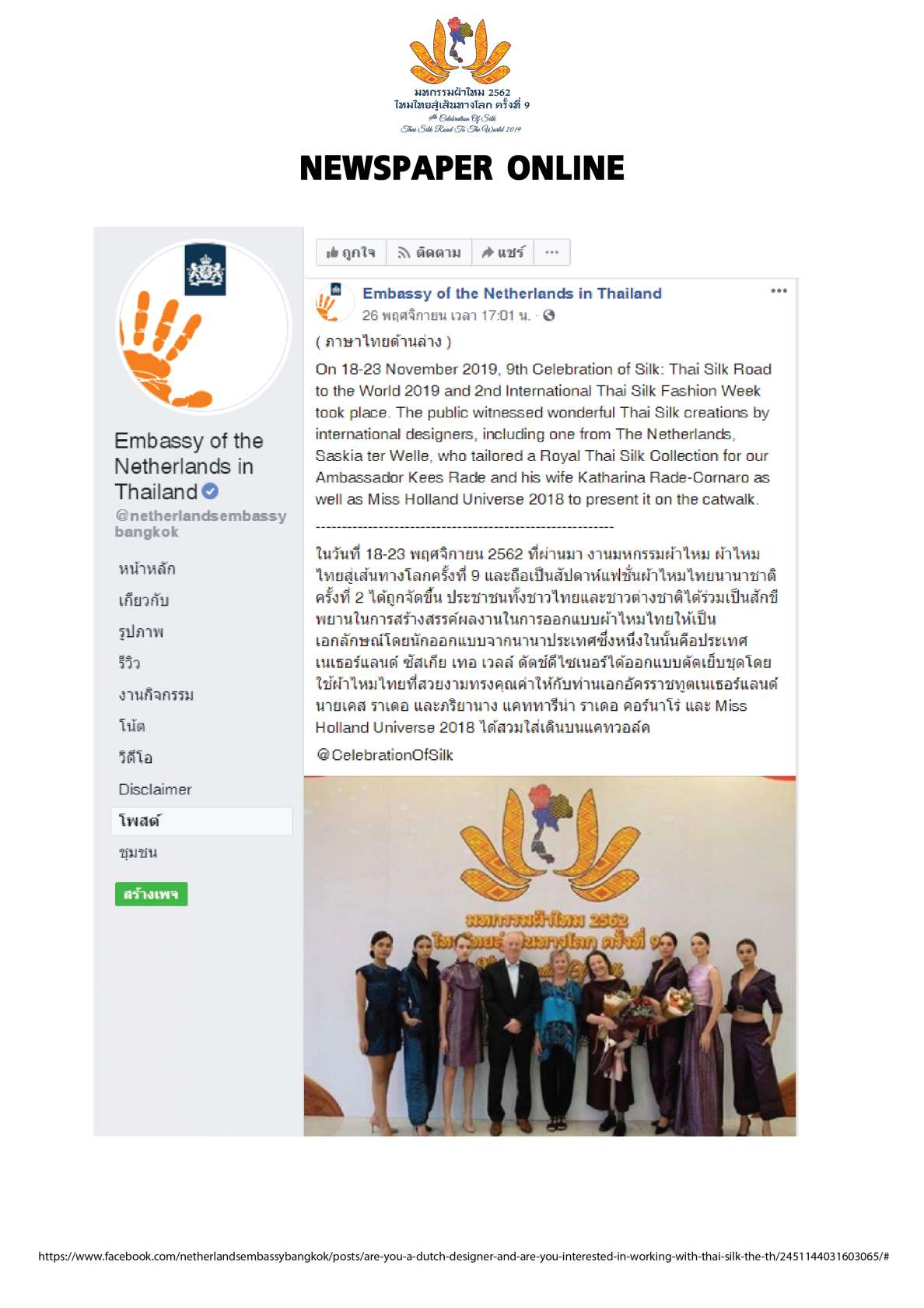 • การแสดงแฟชั่นโชว์และการเดินแบบโดยเอกอัครราชทูตและคู่สมรส