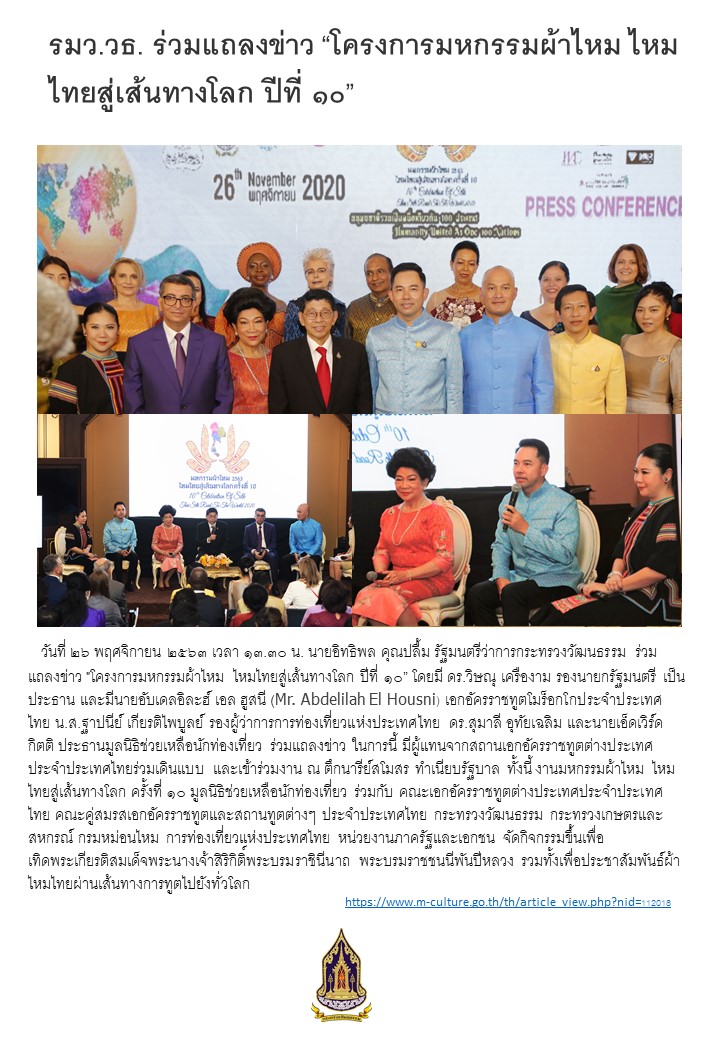 • งานวันแถลงข่าวงานมหกรรมผ้าไหม ไหมไทยสู่เส้นทางโลกครั้งที่ 14 ณ.หอศิลป์ กระทรวงวัฒนธรรม ห้อง Gallery 5